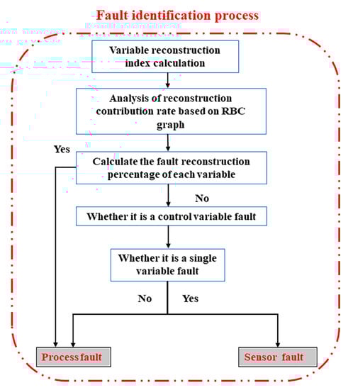After the fault detection part of the integrated fault diagnosis model is completed, the fault variables in the process are identified. In this study, the RBC model is used to reconstruct and identify the fault variables, and finally, the process and sensor faults are distinguished in detail.