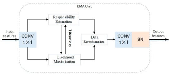 - Li, X.; Zhong, Z.; Wu, J.; Yang, Y.; Lin, Z.; Liu, H. Expectation-maximization attention networks for semantic segmentation. In Proceedings of the 2019 IEEE/CVF International Conference on Computer Vision (ICCV), Seoul, Korea, 27 October–2 November 2019; pp. 9167–9176. [Google Scholar]