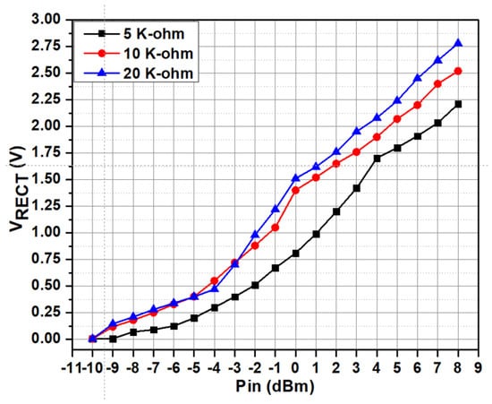 Figure 20. Output voltage of the RF-DC converter at multiple RF input power levels.