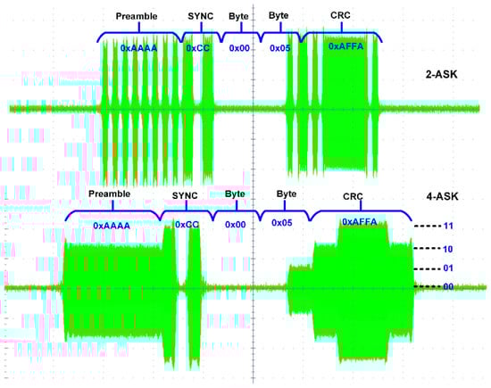 Figure 22. The RF 2-ASK and 4-ASK modulated SSF frame at 5.8 GHz.