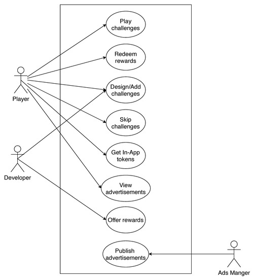 In addition to the core functionality of the game described above, the specific mobile game provides some additional features. A user is able to skip any challenge, at any time of the game, by viewing an advertisement offered by an advertising company, by paying in in-app tokens, or in fiat currency. Furthermore, a player can get a reward, which can be an asset for the game, by the advertising company if they watch an advertisement. Moreover, the player can at any point of the game redeem points in order to receive rewards given by the game company. The rewards are assets (e.g., a sword or a shield) that can be used in the game or in any other game that uses the same blockchain platform, thanks to blockchain properties, persistence, immutability, and transparency.