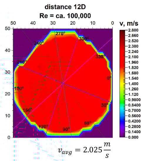 Therefore, it was checked whether the measurements taken in the 12D plane, with Reynolds number ≅ 100,000, should be provided with an average correction factor of 1.010 in order to minimize the uncertainty of the measurements.