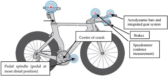 Bicycles designed for triathlon tend to differ from the ones used by road cyclists [] as triathletes seek improvements in their aerodynamic profile by reducing their frontal projected area []. This is achieved by moving the saddle further forward relative to the bottom bracket compared to road cyclists [] while placing the trunk further downwards that permit the forearms to extend onto integrated aerodynamic bars.