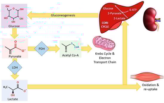 - Van Hall, G. Lactate as a fuel for mitochondrial respiration. Acta Physiol. Scand. 2000, 168, 643–656. [Google Scholar] [CrossRef]