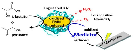 - Smutok, O.; Karkovska, M.; Serkiz, R.; Vus, B.; Cenas, N.; Gonchar, M.V. A novel mediatorless biosensor based on flavocytochrome b2 immobilized onto gold nanoclusters for non-invasive L-lactate analysis of human liquids. Sens. Actuators B Chem. 2017, 250, 469–475. [Google Scholar] [CrossRef]