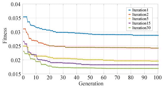 The differential evolutionary algorithms have significant advantages in solving the NP-hard problem. The problem (13) is clearly an NP-hard problem, which is difficult to be handled by general optimization methods due to l 0 -norm. Therefore, we use a differential evolutionary algorithm to handle the above problem for the purpose of analyzing pruning sensitivity. In the differential evolutionary pruning sensitivity analysis (DEPS), we let ζ be the decision variable, Z = ( ζ 1 , ζ 2 , . . . , ζ L ) T , which measures the pruning sensitivity of each layer. According to Equation (13), we simplify it appropriately to create the fitness function as follow