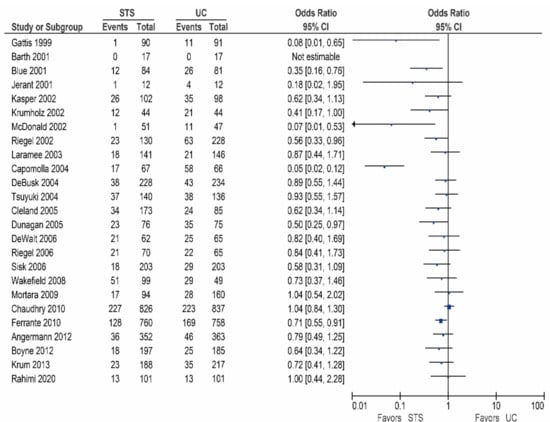 Of the 26 other studies, 24 studies reported data on the all-cause mortality, these results are shown in Table 2/Figure 1 [15,17,18,20,24,25,27,28,29,30,31,32,33,35,36,37,38,39,40,41,42,43,44,45]. As shown, 13 studies did report a non-significant reduction in all-cause mortality [20,25,29,30,32,35,36,37,38,40,41,43,45], while 11 studies did not show a reduction in the all-cause mortality [15,17,18,24,27,28,31,33,39,42,44].
