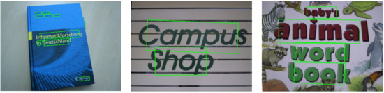- Huang, W.; Lin, Z.; Yang, J.; Wang, J. Text localization in natural images using stroke feature transform and text covariance descriptors. In Proceedings of the IEEE Conference on Computer Vision and Pattern Recognition (CVPR), Portland, OR, USA, 23–28 June 2013; pp. 97–104. [Google Scholar]