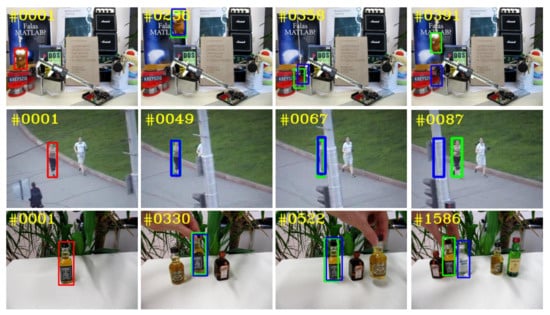 - Bertinetto, L.; Valmadre, J.; Golodetz, S.; Miksik, O.; Torr, P.H. Staple: Complementary learners for real-time tracking. In Proceedings of the IEEE Conference on Computer Vision and Pattern Recognition (CVPR), Las Vegas, NV, USA, 26 June–1 July 2016; pp. 1401–1409. [Google Scholar]