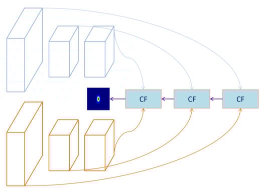 - Valmadre, J.; Bertinetto, L.; Henriques, J.; Vedaldi, A.; Torr, P.H. End-to-end representation learning for correlation filter based tracking. In Proceedings of the IEEE Conference on Computer Vision and Pattern Recognition (CVPR), Honolulu, HI, USA, 21–26 July 2017; pp. 2805–2813. [Google Scholar]