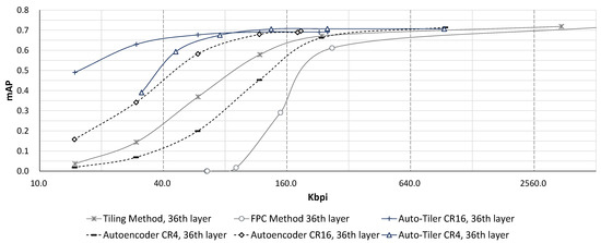 mAP comparison of an auto-tiler, autoencoder, and existing methods at 36th layer.