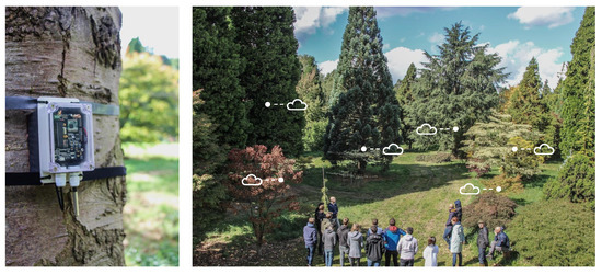 Environmental monitoring is a domain where large-scale remote sensing can help to gain a better understanding in order to take more adequate measures to combat pollution and climate change. For example, precision farming based on the analysis of the actual conditions in the field can optimize the usage of fertilizers and agrochemicals, protecting the soil and reducing costs, while increasing the crop yield. Another example application is forest management. Forests and trees in general store carbon, retain water, contribute to the conservation of biodiversity and to public health. They help to mitigate climate change, and aesthetically support our well-being. Remote on-site monitoring of critical parameters of trees [1], illustrated in Figure 1, contributes to a better understanding and helps to predict the effects of climatic extremes on forests, urban trees and parks. The acquired information can provide crucial input for climate-smart and sustainable decisions [2].