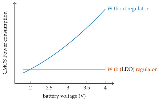 Power management on the IoT node falls into two main parts. A first part is the voltage regulation, which ensures that the voltage input, either from the battery, energy harvesting or any other power source, is converted into the operating voltage for the node’s electronics. Most often this includes a Low-Dropout Regulator (LDO) voltage converter or switching mode voltage regulator. Please note that these electronics might require different operating voltages. In any case, these voltages are distributed to the controller and all peripherals through the so-called supply rails.