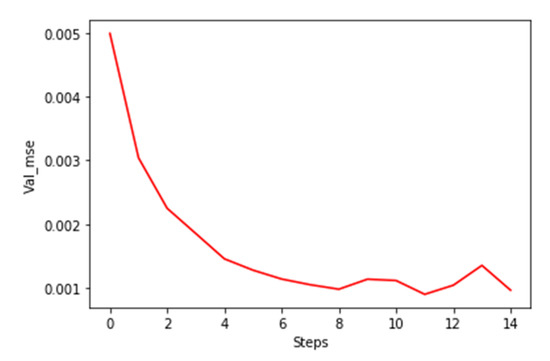 In the training dataset, the turbo engines run from healthy conditions to failure one. Therefore, the RUL at the last cycle of the training data point should be zero. The residue between the real last cycle and the predicted last cycle can be calculated, as shown in Figure 12. The RUL MSE can then be calculated based on Equation (4). The n is equal to the number of turbo units in the dataset. Tr and Tp stand for the real last cycle and the predicted last cycle, respectively.