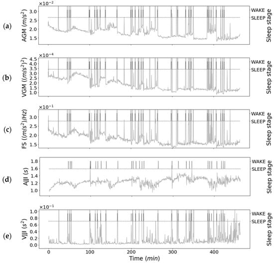 3.2. Relationship between Features of First-Step Classifier and Sleep Stages