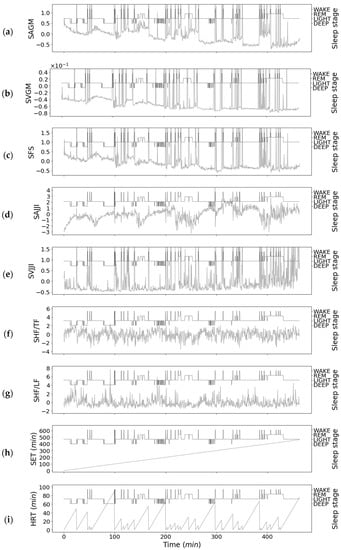 | 8 | Sleep elapsed time (SET) | REM, LIGHT, DEEP |