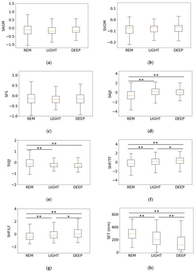 3.3. Relationship between Features of Second-Step Classifier and Sleep Stages