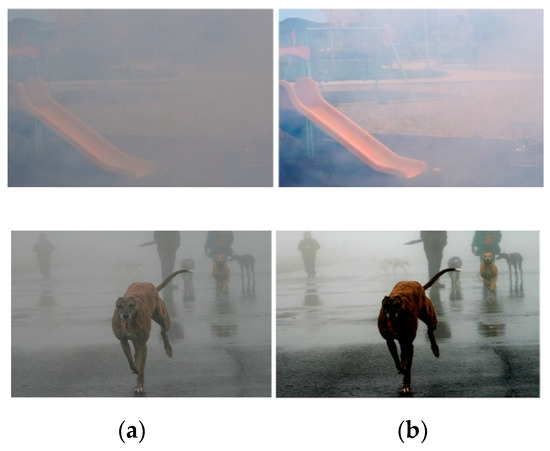 - He, K.; Sun, J.; Tang, X. Single image haze removal using dark channel prior. IEEE Trans. Pattern Anal. Mach. Intell. 2011, 33, 2341–2353. [Google Scholar]