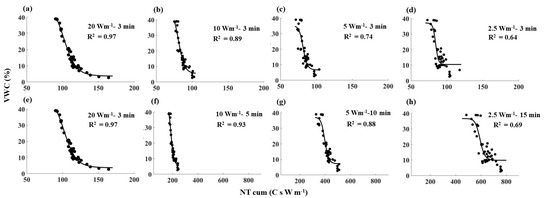 3.1. Comparison of Tcum–SWC Relationships