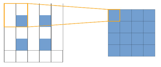 In the decoding network, the upsampling operation is realized using transpose convolution module, which is also named deconvolution and fractionally-strided convolution module. The operation of the transpose convolution is the same as convolution. The kernel size and stride of transpose convolution module are all set as 2, so the corresponding operation of transpose convolution is shown in Figure 5, which can be regarded as double upsampling.