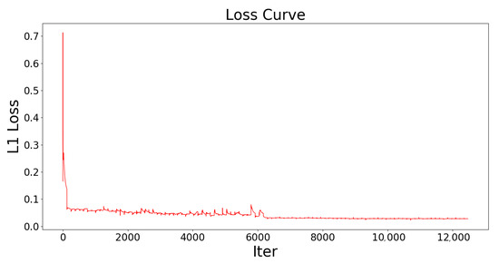 Figure 9 shows the loss curve of the network. The loss of the predictions decreases rapidly at the beginning. Then the loss changes slightly before 6000 iterations, which means that the network can be further optimized. After 6000 iterations, the learning rate decreases by 0.2 to optimize the network more accurately. The L1 loss of the network becomes smooth and constant, which indicates that the loss has been minimized and the network finally converged. The number of parameter in the network is 15.37 million.
