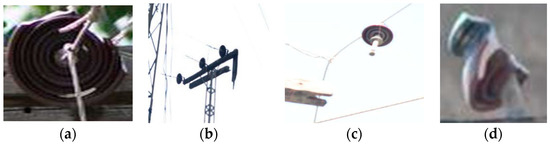 Different faults found in power distribution systems: (a) broken suspension disc insulator, (b) broken cross arm, (c) unclipped pin insulator from the cross arm, (d) broken pin insulator.