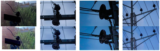where and are the output results after recomposing and denoising. A final enhanced image is acquired by the use of the above process. Some of the results obtained on different training images are shown in Figure 11. Such variations of different gamma and lambda values are used as an augmentation technique to increase the detection and generalization of the insulator detection model in different light conditions.