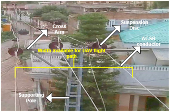 In low-voltage power distribution lines, electric poles consist of different components for specific tasks. The inspection and maintenance of such components are of paramount importance for the continued supply of power to the end users. Due to the presence of these systems in urban and congested areas, public safety is a major concern. Most electric poles serve as a mechanical support for different components present in these distribution systems. Such components comprise insulators, transformers, three-phase ACSR wires, cross arms, etc., shown in Figure 4.