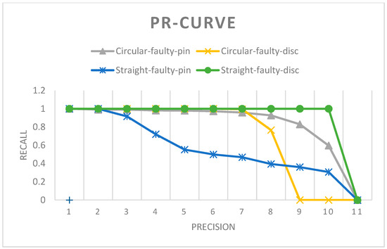The precision–recall curves of YoloV4 for pin and suspension disc insulators from different test datasets are shown in Figure 16. The average maximum precision is calculated with 11 recall values. Overall, the performance of the model is highly reliable when used in better light conditions.
