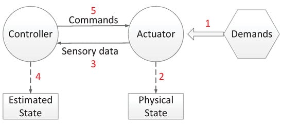 Sometimes, attackers can directly sense the state of the CPS by connecting with the physical system and do not need to intrude into the CPS. For example, when attackers hope to sense the frequency of power grid and then increase or decrease the load to disrupt generators, a machine can be used directly to connect with terminal electrical appliances to sense the frequency of the power grid system [28]. In most of the cases, however, the state of the physical system cannot be directly sensed. Attackers need to collect information by intruding into the information system to evaluate the state of the physical system, which is possible, as described in [3]. At the same time, because attackers only hope to get information about the CPS and do not execute any operation, sensing of the CPS state is difficult to detect.
