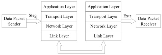 Network protocols, including the application layer, transport layer, network layer, and link layer, are usually developed at different levels, and each layer is responsible for distinct communication functions. The link layer usually contains the device driver in the operating system and the corresponding network interface card in the computer. They deal with the niceties of the physical interface with the cable in a cooperative fashion. They are usually generated automatically by the system itself, and generally cannot be changed in design, so information steganography cannot be performed at this layer. The network layer handles the activities of packets in the network, while the transport layer chiefly affords end-to-end communication for the applications on the two hosts; the application layer is responsible for handling particular application specifics. This makes it possible to embed secret information.