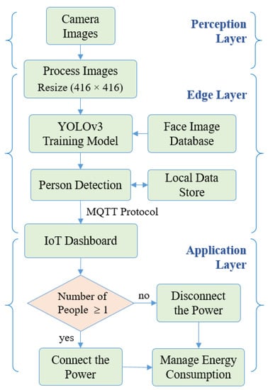 The proposed approach is a promising tool towards the implementation, in future work in which Industry 4.0 will be fully considered, of Industry 4.0 in smart energy systems. The rest of the sections of this paper are listed as follows: Section 2 describes the proposed architecture based on IoT topology. The suggested deep learning algorithm for people recognition is presented in Section 3. Section 4 presents the experimental results and discussions. Finally, the conclusions of this work are illustrated in Section 5.