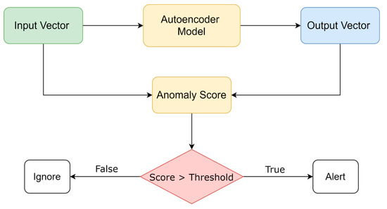 A threshold is defined depending on the training algorithm and depending on the targeted accuracy. If the anomaly score at a given time is higher than the defined threshold, the model sends an anomaly alert. This process is illustrated in Figure 4.