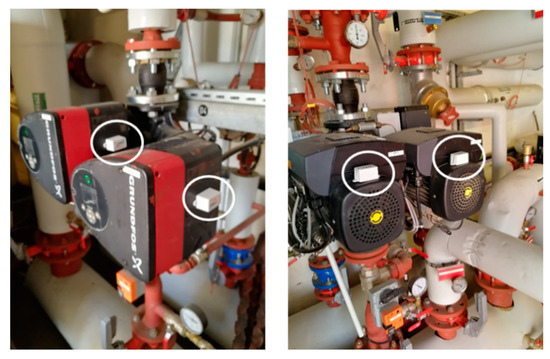 Figure 5. A photo of a vibration device installed on a double pump. - Electric meter device: an IoT meter installed to collect the electric energy data which includes the following measures: electric current intensity and voltage as well as the temperature on the surface of the equipment.