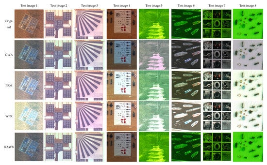 - Huo, J.Y.; Chang, Y.L.; Wang, J.; Wei, X.X. Robust automatic white balance algorithm using gray color points in images. IEEE Trans. Consum. Electron. 2006, 52, 541–546. [Google Scholar] [CrossRef]