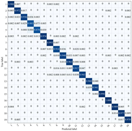 The original time-domain data was used as the input data and the node number was used as the label for training. Therefore, there were 19 sets of samples, and each set of samples has 2000 pieces of data. In total, 30% of the data is randomly selected as a test set, and the rest is the train set.