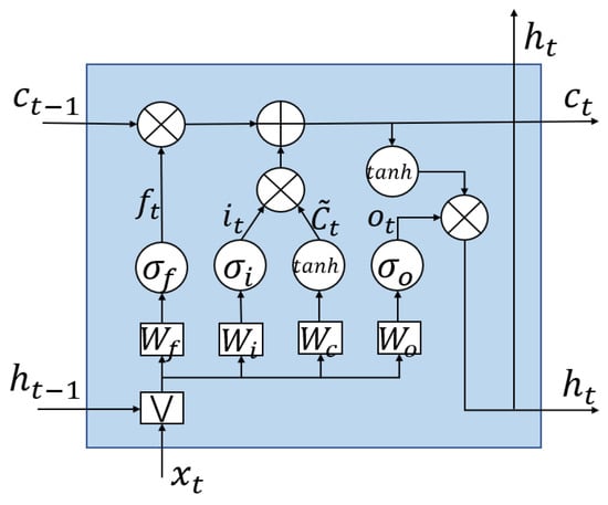 The calculation of state C in the current time step is shown in Equations (5)–(7), where is the input weight matrix, is the state weight matrix, is the output of the input gate. Here is the output of the tanh function gate, the vectors and are bias parameters.
