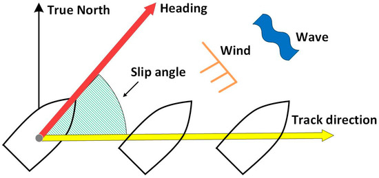 We tested a simple case of slip-angle correction when the ship changed her course largely. There were seven course changes during the 1 h test. We noted that the temporal yaw-rate angle followed a similar trend to the temporal-slip angle between the heading and TD. Therefore, we used this value of yaw-rate angle as the slip angle and multiplied it by a factor to match the size of slip angle. In fact, the maximum slip angle based on the post-processed data was about 7° in the case of a 180° turn during the test. We decided the factor based on this maximum value. In the following test section, the results with slip-angle correction are compared with the results without slip-angle correction.
