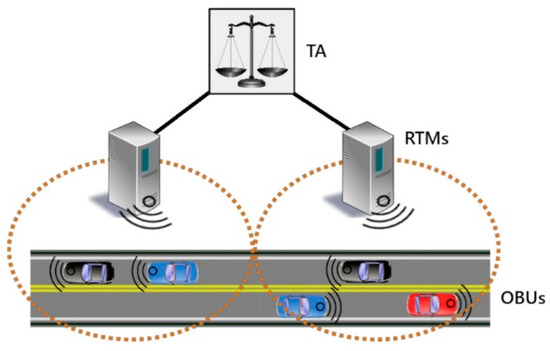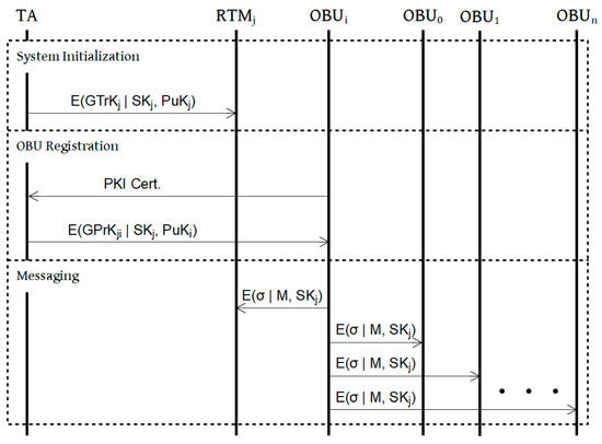 In the proposed scheme, the TA performs the authentication of an OBU’s real identity via PKI certificate before issuing group keys when an OBU sends a request to join an RTM coverage area. Requiring proof of real identity can reduce the ability of malicious OBUs to enter the group as they must first pass an offline identity verification process in order to obtain PKI certificates validating their real identities.