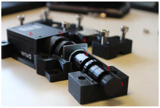 The used video camera was Grasshopper3 model GS3-U3-91S6M-C (Flir) machine vision camera with ICX814 (Sony) monochromatic CCD sensor of  pixels. The 3D model of the casing must be modified if a different camera is being used. The camera heats up during operation, so a connection to air must be established to allow heat to dissipate. The orientation of the camera is forced to be parallel with the grating by the casing, so problems in orientating the camera with the slit image, as mentioned in [], are avoided.