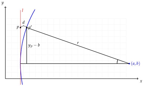 Chernov and Lesort [] suggested changing the parameterization of the optimization problem for better stability. They suggested using Pratt’s circle parameterization [], which defines a circle by
