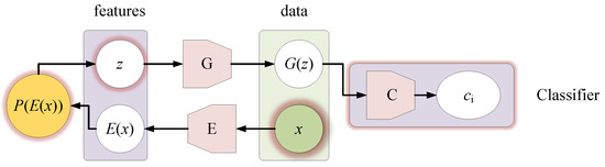 After the training of Bi-GAN, three trained networks, E, G, and C, are taken out to form a structure as shown in Figure 9, which is used to predict the categories.