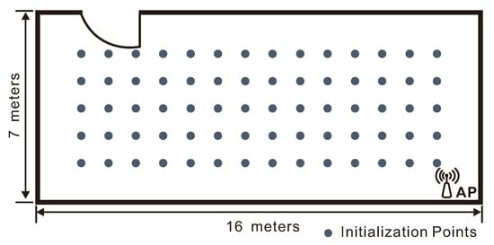 Wireless positioning is the most popular approach for indoor location-based services. It finds applications in emergency rescue, smart home, security monitoring and many other areas. In contrast to outdoor positioning, whose dominant approach is based on the global positioning system (GPS), indoor positioning is hindered by multiple sources of interference and multipath effects in time-varying environments. In view of this, multiple techniques for indoor positioning are currently being investigated. The most popular ones are based on radio frequency identification [,], Bluetooth signals [,], ultra-wideband signals [,] and WiFi signals [,]. Due to their large coverage, low implementation cost and availability in existing mobile devices, WiFi-based indoor positioning is the most promising technique.