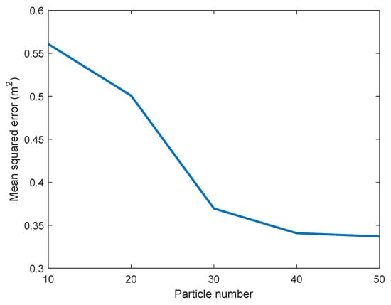In order to tackle the above shortcoming, a number of methods are available to reduce the estimation error resulting from using particle filtering with a restricted number of particles. In [], a machine learning classifier is added to decide whether particles are in the correct room. In [], a context variable, with values in the set {‘free space’, ‘constrained space’, ‘static space’}, is added to the state to account for the movement constraints at the target’s current position. Also, the authors of [] divide the environment into reachable and unreachable areas, so as to discard particles falling into an unreachable area.