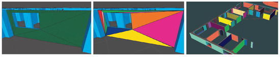 Figure 5 shows several nonconnected triangles resulting from the 3D modeling process. Once segmentation is applied to the whole building, we obtain the set of wall sections depicted in
