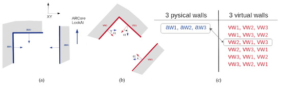 ) between the normal vector of the virtual plane and the normal vector of its corresponding plane, detected by ARCore, is calculated by applying the Equation (