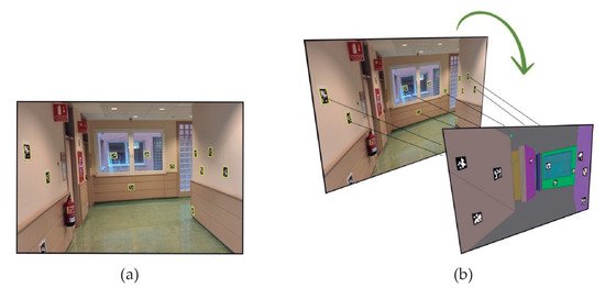 17]. Although tracking and sensing technologies are able to estimate the initial position and orientation, both must be corrected during the navigation process. The solution requires additional markers in the real scenario in order to pose correctly the virtual camera in the real world. The generation and placement of these human-made markers involve a time-consuming task for large places, as well as multiple limitations regarding the automation of the process.