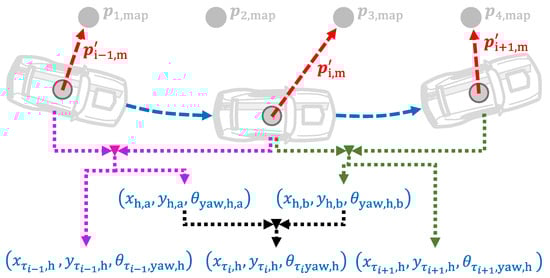 The state of the vehicle can be estimated once the algorithm has reliably established that the vehicle is moving. If Gauss-Markov stochastic processes are assumed, the most computationally efficient method to estimate the optimum state of moving objects is the Kalman Filter (KF) []. The KF algorithm can fuse sensor measurements with the vehicle state predicted by means of a motion model. Since the aim of this work is to generate a reference vehicle state for testing and validation of autonomous driving functions, the motion model used is especially designed for accurate performance under tractive driving.