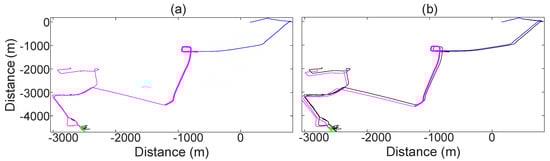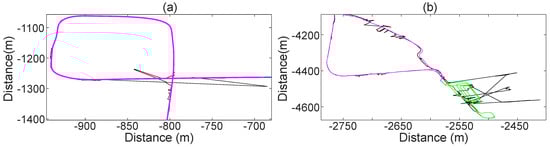 The results on Table 3, suggest that the LbPM is adequate for SLAM. Given that the LbPM is capable of delivering RTK-like correction data, it could enable the generation of an accurate marker library in unknown environments. It is not clear whether or not a lane-accurate indoor navigation could be possible in places with a reduced marker density. Future work on this module could include adapting the LbPM algorithm for SLAM, and implementing it on dedicated hardware for real-world testing. For this purpose, tailored-made hardware solutions, such as [,], could aid in the navigation of complex environments, as can be parking structures. The use of lightweight artificial intelligence techniques, as shown in [,] could aid in the implementation of the standstill recognition in hardware with limited computational resources, as are embedded systems. Finally, the sensor fusion with on-board sensors in the vehicles could improve the dead-reckoning navigation in indoor environments.