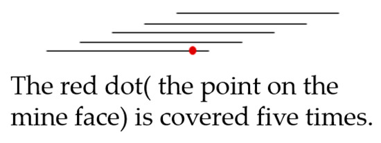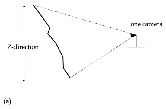 In order to sense the whole Z-direction (Figure 4) area, one or more cameras need to be deployed. As shown in Figure 5a, when the sensing area of a single camera can cover the Z-direction of the mine face, only one camera is sufficient at this point; if not, multiple K cameras as shown in Figure 5b need to be deployed at the same monitoring point to meet the need for sensing the whole coverage of the Z-direction, while the overlap of the monitoring areas of the multiple K deployed cameras also needs to be satisfied to meet the photogrammetry requirements.